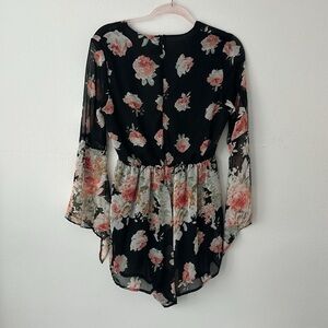 Floral Print Deep V-Neck Romper