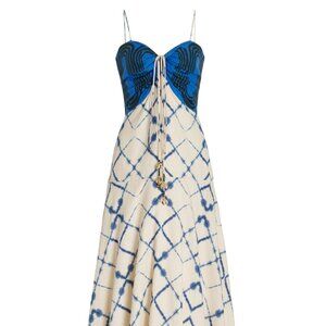 NWT Nuri Printed Linen-Cotton Long Halter Dress