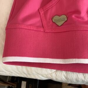 How cute is this jacket. I do not believe it’s ever been worn. In excellent condition With breast cancer awareness ribbon.