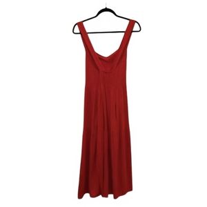 Valentina Naldi Scarlet Red Linen Blend Midi Dress Smocked Back Made in Italy XL