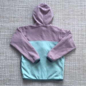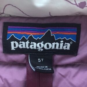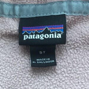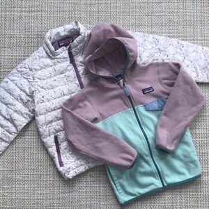 Bundle of Patagonia down puffer jacket and fleece jacket, size 5T. Puffer is EUC with few minor spots on front and minor discoloration at cuffs/sleeves. Fleece is VGUC with minor wear to fleece.