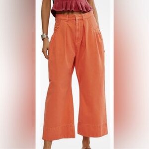Stylish wide-leg pants by Free People. Vibrant coral hue. Perfect for a bold look. Never been worn.