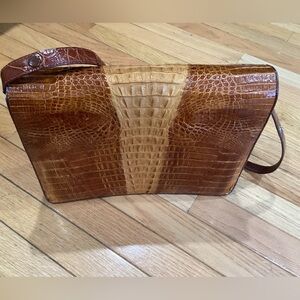 Vintage 1950-60s Crocodile embossed leather shoulder bag. Add this gorgeous and unique bag to your collection today!
