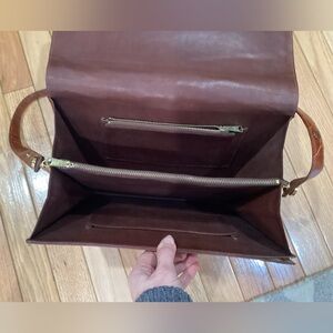 The inside has 2 main compartments, separated by a third zippered compartment. There are also two enveloped-sized compartments inside, one that closes with a fully functional zipper.