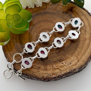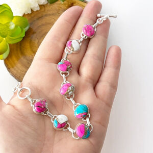 Genuine Cotton Candy Dahlia Turquoise Gemstone Bracelet Pink Blue Oval New 925