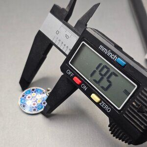 Murano Glass Millefiori Pendant 1" Sterling Silver Blue White Italy Signed PD
