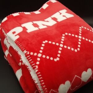 PINK Victoria's Secret "PINK" Red & White Holiday Tree & Dog Sherpa Blanket