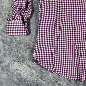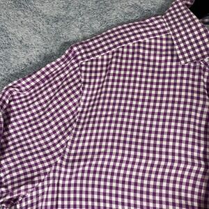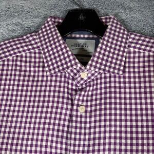 Charles Tyrwhitt Mens Slim Fit Gingham Dress Shirt Purple White 17/33 Cotton