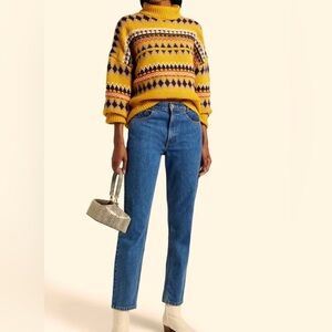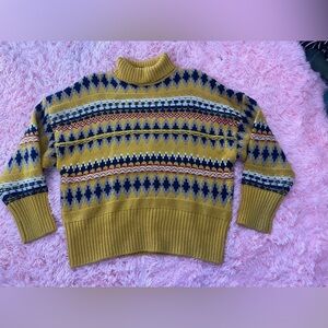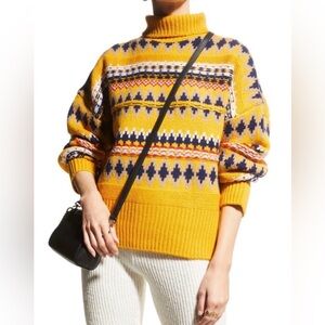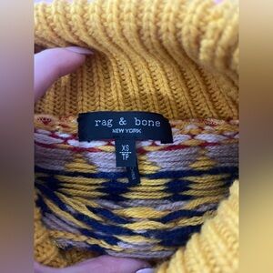 Rag & Bone Wool Turtleneck Sweater XS Yellow Fair Isle Knit Chunky Pullover