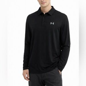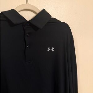 Under Armour Men’s 2XL Long Sleeve Polo Black UA Logo Stretch Golf/Training Top