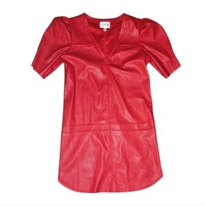 Elegant faux leather dress with short sleeves. Perfect for a stylish look.