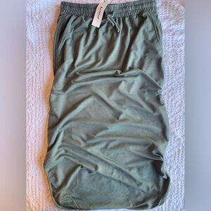 Elegant sage midi skirt. Perfect for chic styling.