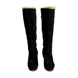 UGG Women’s Black Suede Shearling Lined Heeled Knee High Boots Size 8