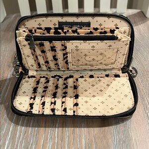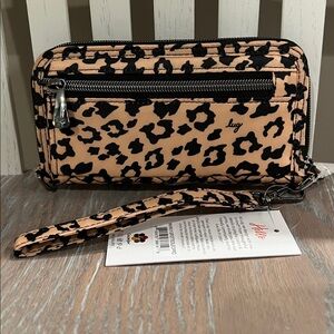 Whirl through your day with the Whirly RFID Wristlet Wallet! This nifty wristlet is your ultimate organizer, boasting eight card slots, a clearview ID holder, bill slots, and a zipper pocket in the main compartment, plus an extra accordion foldout pocket in the back. Attach the wristlet strap to either side for flexible fun and enjoy RFID-blocking technology that keeps your cards safe from sneaky scanners.