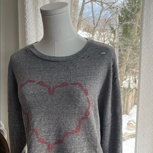 Lauren Moshi Distressed Gray High Heel Heart Print Women's Top Sweatshirt XS