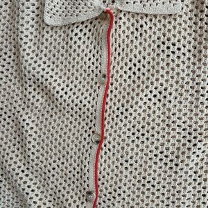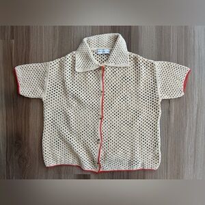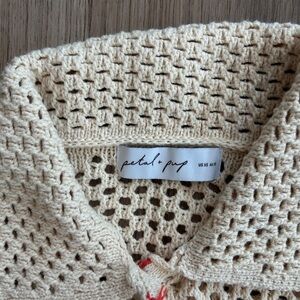 PETAL & PUP Val Open Stitch Short Sleeve Button-Up Shirt XS