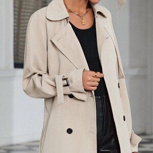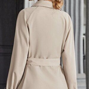 Khaki Casual Women's Raglan Sleeve Double Breasted Belted Trench Coat