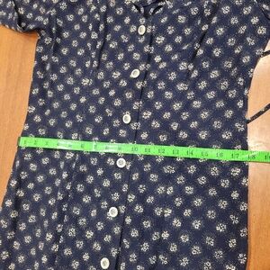 Vintage 90s Midi Length Button Front Navy Floral Dress Size 9/10 Wedding Guest