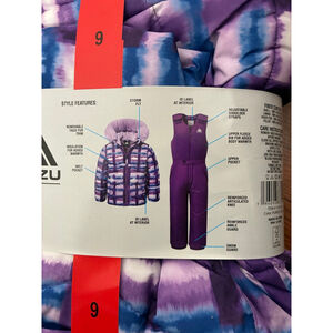 NEW! SNOZU 2 PC SNOWSUIT JACKET WITH MATCHING BIB PANT GIRL SIZE 6 COLOR PURPLE