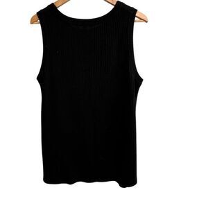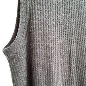 Lightweight, breathable black waffle knit tank featuring a subtle twist detail at the hem for a flattering fit. Sleeveless design with a soft, slightly stretchy fabric—perfect for layering or wearing solo in warmer weather. Size XL, fits true to size. Gently worn with light pilling visible (see photos). A comfy, versatile closet staple!