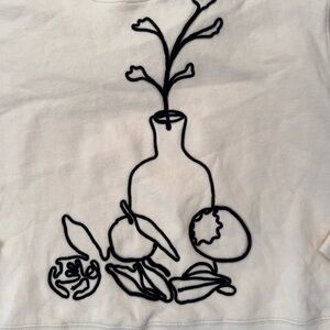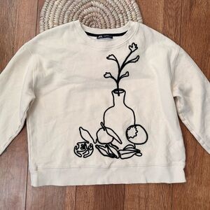 Zara Cream Colored Sweatshirt with Black Embroidered Line Abstract Art