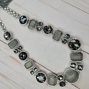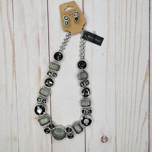 WHBM White House Black Market Chunky Silver Crystal Necklace and Earring Set