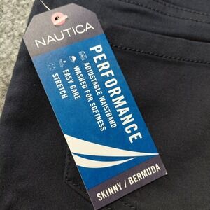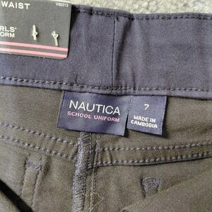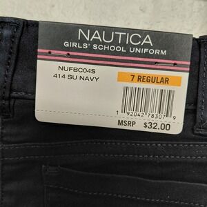 BRAND NEW WITH TAGS. These Nautica navy blue girls' school uniform shorts in size 7 Bermuda are a stylish and comfortable choice for young girls. Made from a cotton blend material, these adjustable waist shorts feature a solid dark blue and black color with a zip/button closure. The set includes a pair of pants, making it a convenient and practical option for school uniforms. Perfect for walking and other school activities, these shorts are machine washable for easy care. With a regular fit and featuring adjustable waist and pockets, these shorts provide both style and functionality for a productive school day.