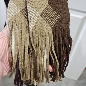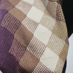 Elegant scarf with a rich purple and brown pattern. Ideal for a chic look.