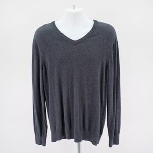 Eddie Bauer Large Tall Cotton Cashmere V-Neck Gray Sweater
