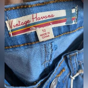 Do you remember patches on your jeans? Now they are a fashion statement! Check these chic light blue jeans from Vintage Havana! Adjustable Waist. Super cute! Brand new with tag. Size 10.