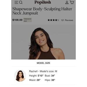 NWOT Popilish Shapeware Body Sculpting Halter Neck Jumpsuit| Brown| Small