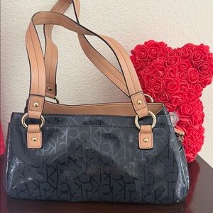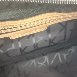 Stylish Calvin Klein women's bag in black and tan. Perfect for any occasion with its elegant design and durable material.
