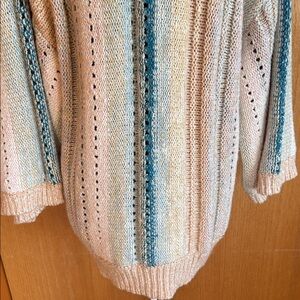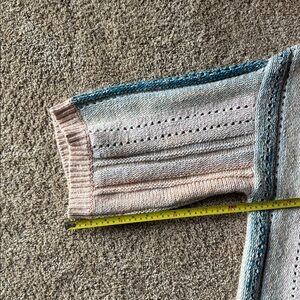 Comfy open front cardigan with wide cropped sleeves and an easy fit. The perfect year-round color palette and weight (if you live somewhere with cool summer nights like I do!) Great pre-loved condition with no flaws but some fuzzing and pilling. One size fits all-- measurements in pics.