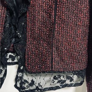 CHICO'S Tweed Gloriana Jacket Red Black Chiffon 1 Embellished