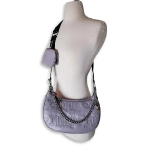 Juicy Couture Gull Grey Quilted Crossbody Shoulder Purse Half- Moon Shape Design With Coin Purse