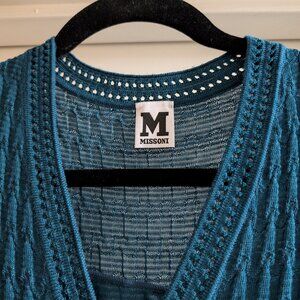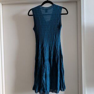 Teal sleeveless knit dress by Missoni. Beautiful knit pattern, and incredible quality. Color is a deep, vibrant teal. Attached liner. Wool/viscose blend.