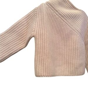 Zara Asymmetrical Soft Beige Ribbed Sweater Wool Blend