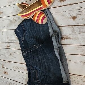 Time and Tru Mid-Rise darker wash cuffed jean shorts