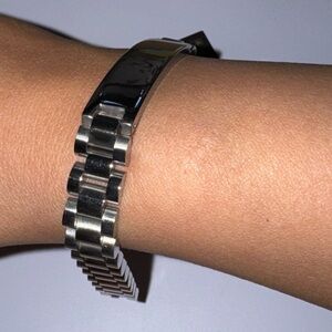 This bracelet will NOT tarnish, fade, or discolor. Made for men who want a clean, powerful, Rolex-style inspired look without the designer price.