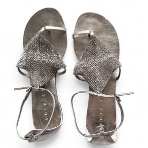 Lola Cruz Rhinestone Mesh T-Strap Sandals – Metallic Silver – Size 39