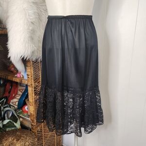 Vintage Black Lace Slip Midi Skirt Lingerie