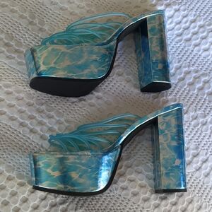 Dolls Kill Club EXX Wet Hot Summer Platform Heels Size 9 M Blue Festival Party