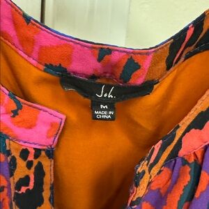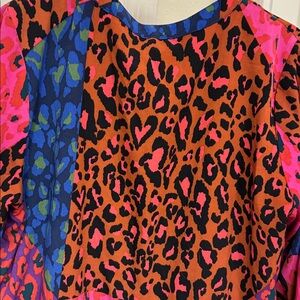 Eye-catching dress with bold pink and blue patterns. Long sleeves for a stylish look. Good condition.