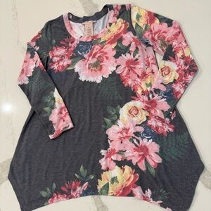 Philosophy Floral Botanical Trellis Asymmetrical Tunic Women’s Medium Gray/Pink