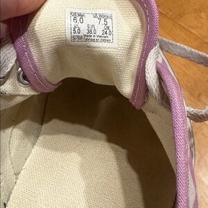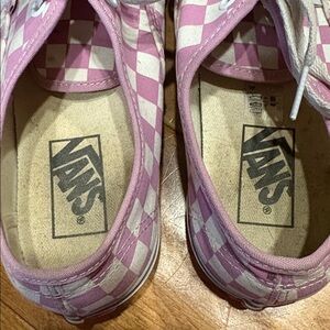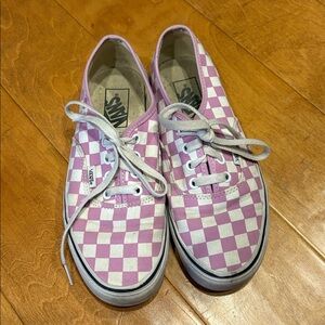 Used Vans low top lace up sneakers. Women’s size 7.5. Sole discolorations as depicted in photos.