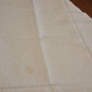 Oval White Tablecloth 107" X 68". (Does have a sight stain as shown in picture, but almost unnoticeable.) Preowned. Non smoking home.