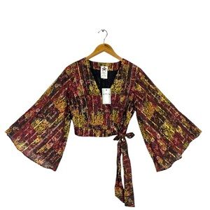 NWT Roopa Pemmaraju Bell-Sleeved Wrap Blouse for Anthropologie Womens Small
