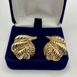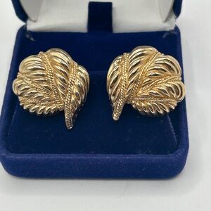Monet Vintage 10k Gold Textured Shell Clip On Earrings
