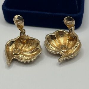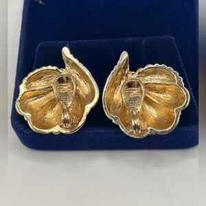 Beautiful Monet clip-on earrings that have been tested for 10k gold-plating. Very little tarnish on back of one earring. This lovely pair has mostly been stored the last few decades. I’m not sure if they’re originally from the 90’s or 80’s. They are beautifully designed to resemble textured sea shells. Very very fine craftsmanship and made to last many more decades . Perfect for adding elegance and sophistication to your wardrobe day or night. Start collecting vintage jewelry today! A fun, exciting and interesting hobby too.