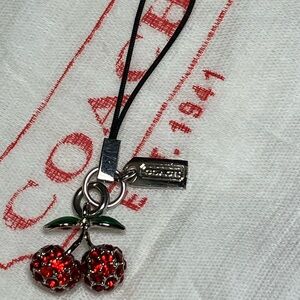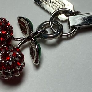 Coach Red Cherry Glitter Vintage Keychain with Silver and Green Accents